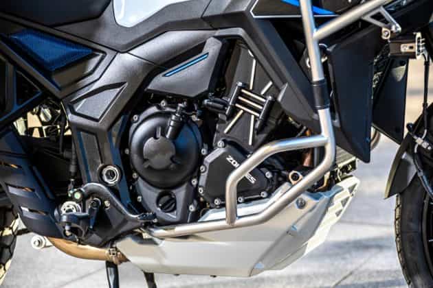 A Zontes 703F é movida por um motor tricilíndrico de 699cc, desenvolvido internamente pela marca. Este propulsor oferece: