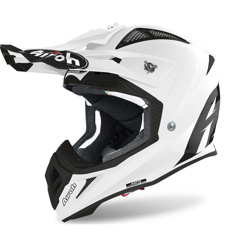 Calota externa realizada em HPC (High Performance Composite). 2 tamanhos de calota externa para um melhor ajuste para cada tamanho. Sistema de ventilação com entradas de ar frontais, superiores e na protecção de queixo e extratores traseiros, para uma óptima circulação do fluxo de ar. Acolchoado interior com tratamento hipoalergénico, totalmente desmontáveis e laváveis. Contam com estrutura 3D para reduzir a força transferida para a cabeça, no caso de impacto. Sistema AEFR (Airoh Emergency Fast Remove): facilita a retirada do capacete em caso de acidente, já que permite tirar os laterais acolchoados. Viseira ajustável com parafusos. Sistema de bloqueio de dupla curvatura. Peso: a partir de 1040g (±50 g).