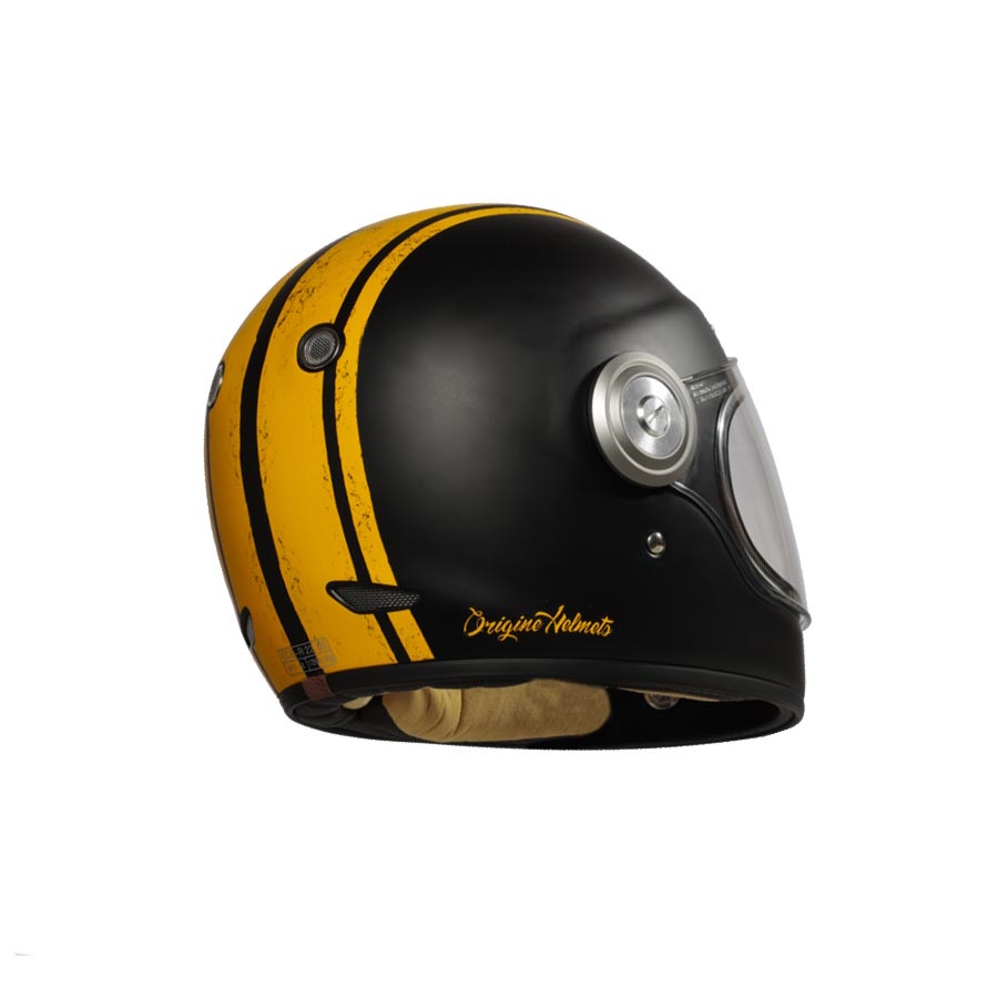 O capacete da Origine, modelo Vega é um capacete facial completo com um aspecto de café racer, fabricado em de fibra de vidro, um material extremamente forte com um peso muito baixo. O capacete tem também um bom sistema de ventilação para um fluxo de ar eficaz.