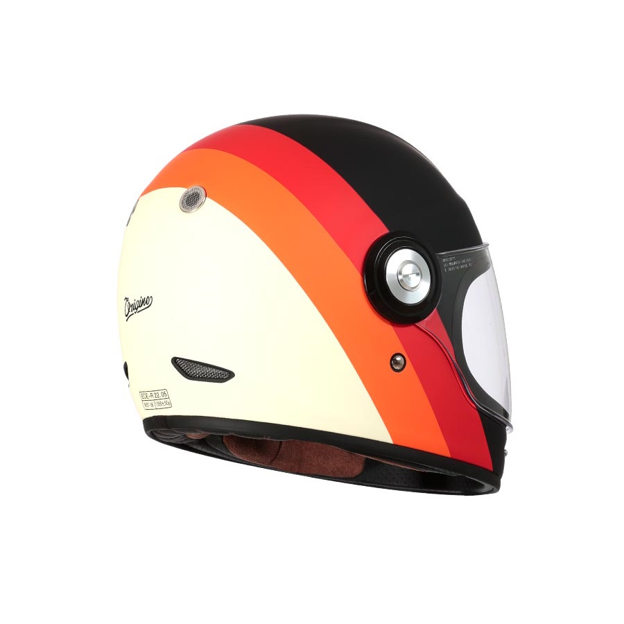 O capacete da Origine, modelo Vega é um capacete facial completo com um aspecto de café racer, fabricado em de fibra de vidro, um material extremamente forte com um peso muito baixo. O capacete tem também um bom sistema de ventilação para um fluxo de ar eficaz.