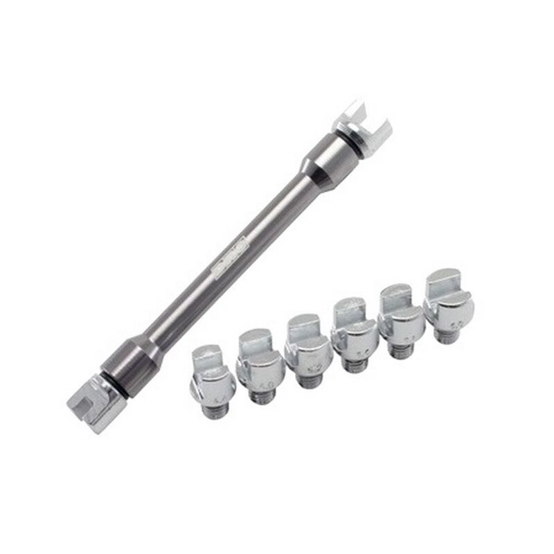 Diferentes cabeças para cobrir porcas de raio dos seguintes tamanhos: 4,0/4,4/5,0/5,2/5,6/5,8/6,0/6,2 mm.