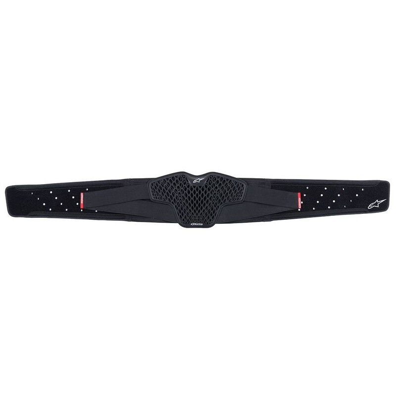 • Faixa elástica preta proteção lombar Alpinestars com tecido ventilado e detalhes vermelhos