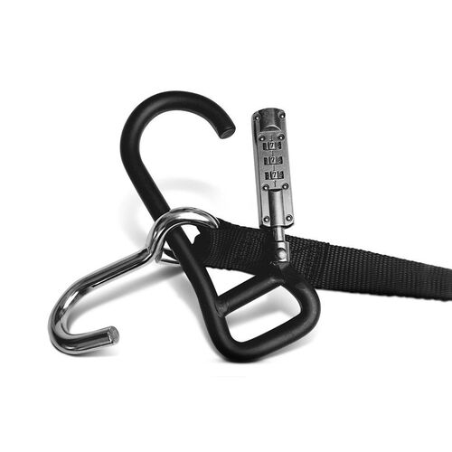 -Contém dois mosquetões feitos de aço endurecido, com sistema de bloqueio numérico de combinação. Não há necessidade de chaves.