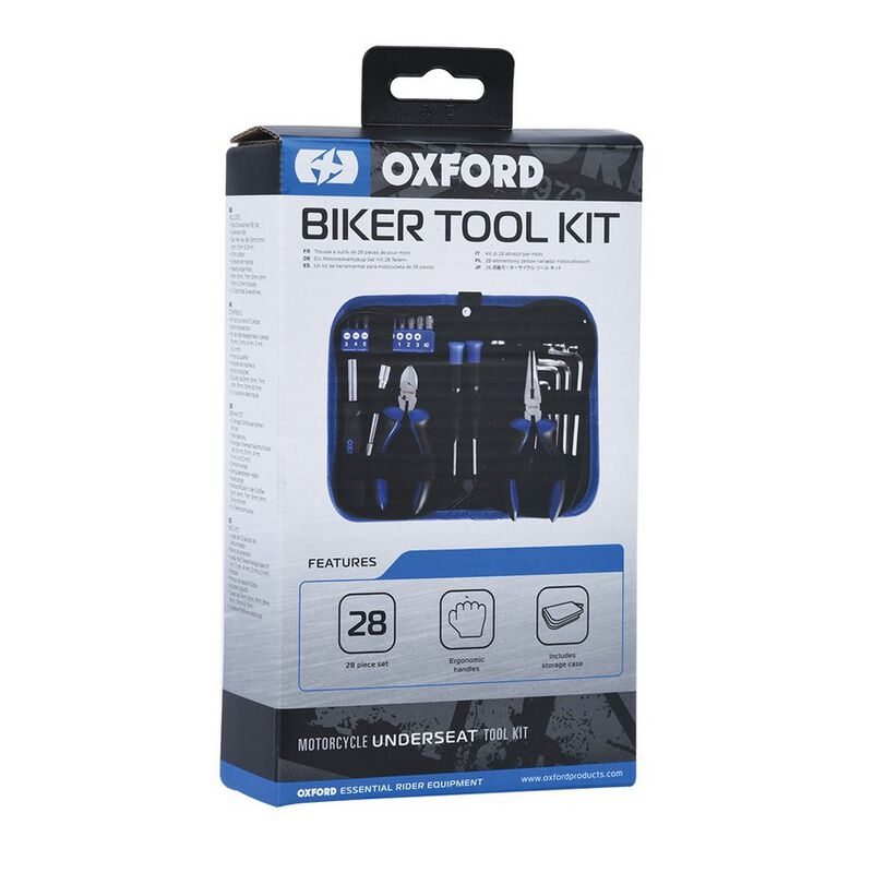 • Kit de ferramentas Oxford Biker Tool Kit 28 peças em caixa preta