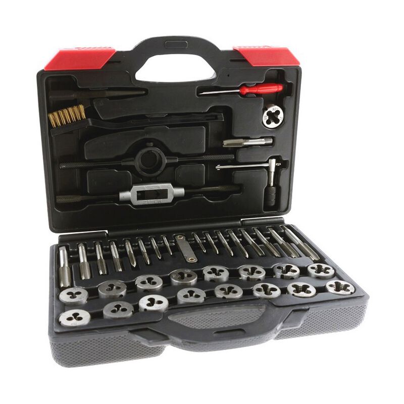 Kit de reparação contendo tudo o que necessita para reparar ou fazer novas roscas (macho ou fêmea) em parafusos, porcas, varetas, etc...
