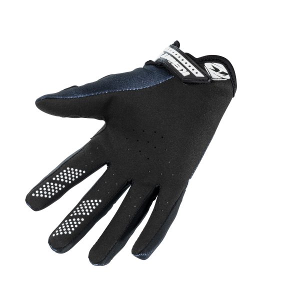A palma, fabricada em material sintético muito resistente à abrasão, inclui as indispensáveis impressões em silicone na ponta dos dedos, que garantem um máximo de aderência no guiador. Estampado por sublimação do motivo que garante ao piloto um visual duradouro.