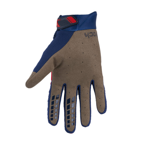 • Luva desportiva Kensy azul e vermelha com texto branco