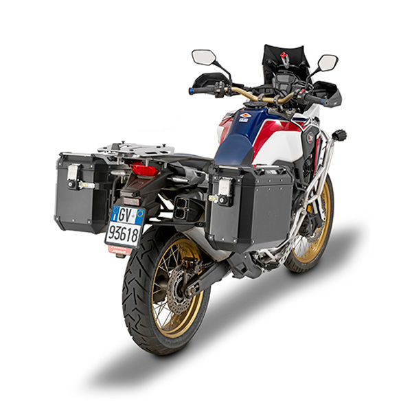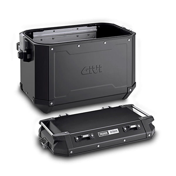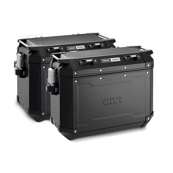 Mala Laterais da Givi, modelo Trekker Outback, são elentos essencial para  de viagens, com acabamento preto lacado.