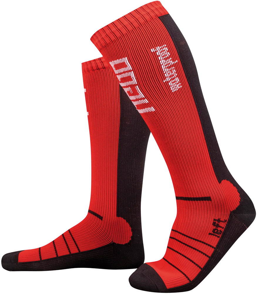 • Meias desportivas vermelhas e pretas com texto branco IMPULSIVO e LIFT