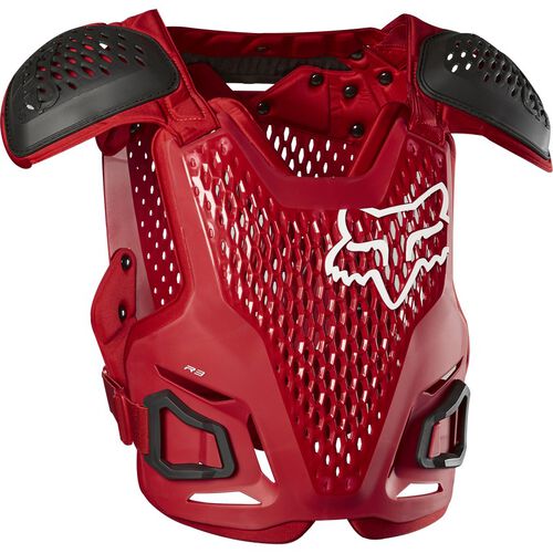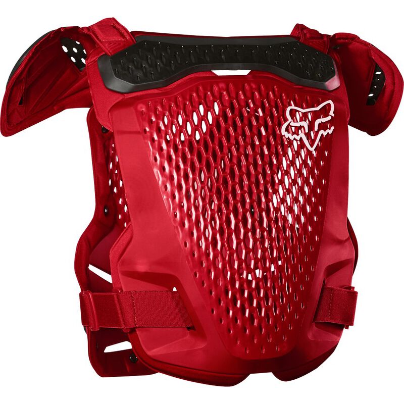• Colete de proteção vermelho Fox com textura perfurada e fechos ajustáveis