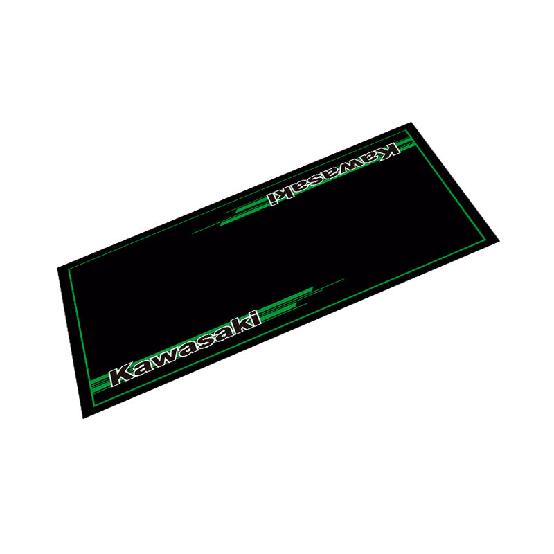 Tapete preto com bordas verdes e texto Kawasaki