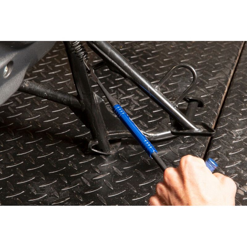 • Ferramenta de desbloqueio azul com cabo em forma de T e ponta preta sobre fundo branco