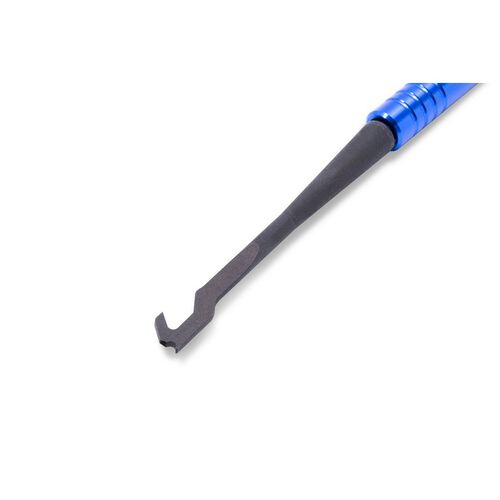 • Ferramenta com cabo azul metálico e ponteira preta com gancho